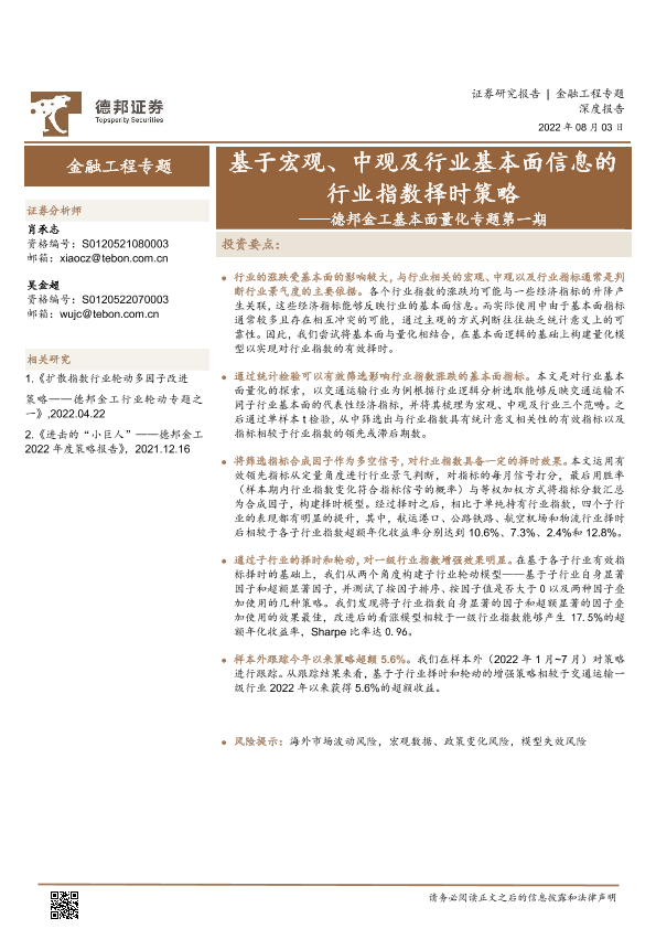 【德邦证券】【20220803】金工基本面量化专题第一期:基于宏观、中观及行业基本面信息的行业指数择时策略-27页