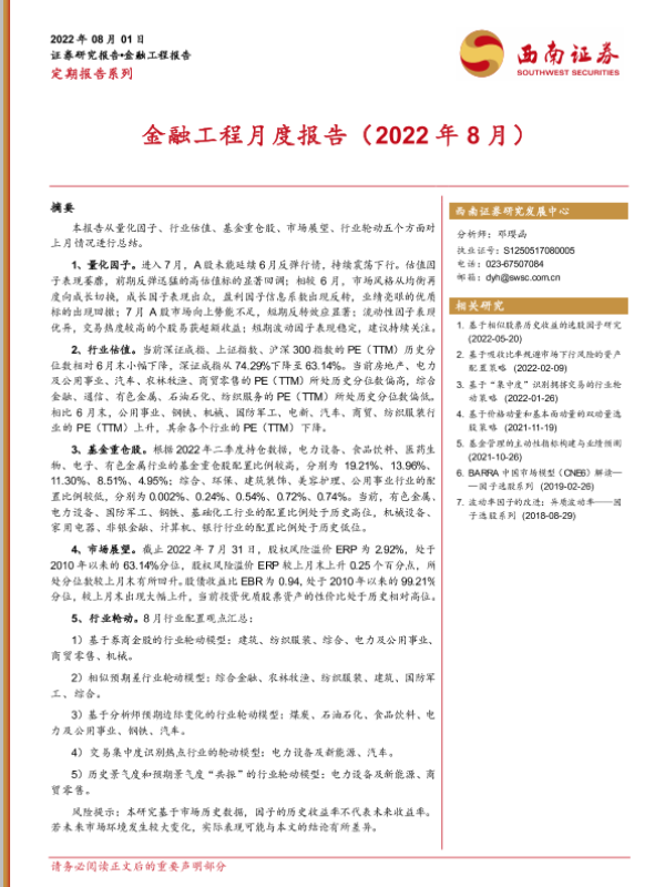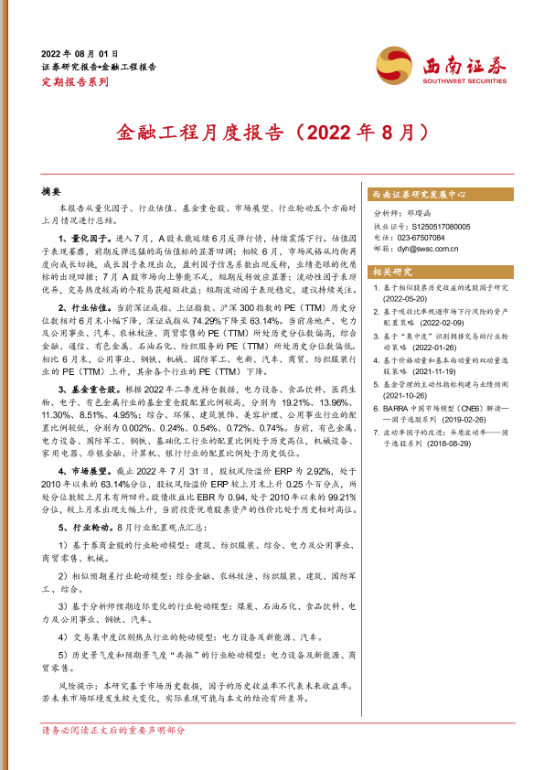 【西南证券】【20220801】金融工程月度报告(2022年8月)-22页