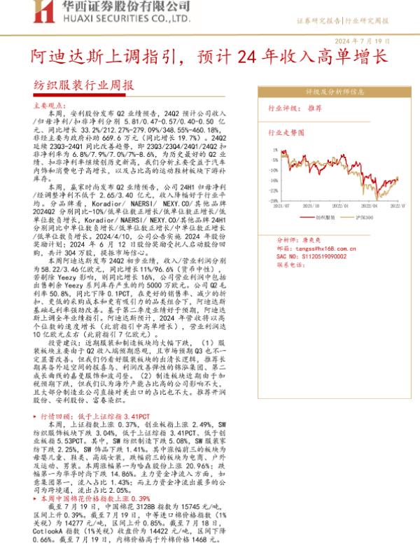 【华西证券】【20240719】20240719-华西证券-纺织服装行业周报:阿迪达斯上调指引,预计24年收入高单增长-31页