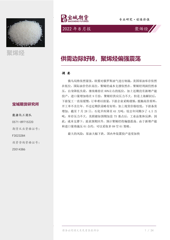 【宝城期货】【20220728】聚烯烃8月报:供需边际好转,聚烯烃偏强震荡-27页