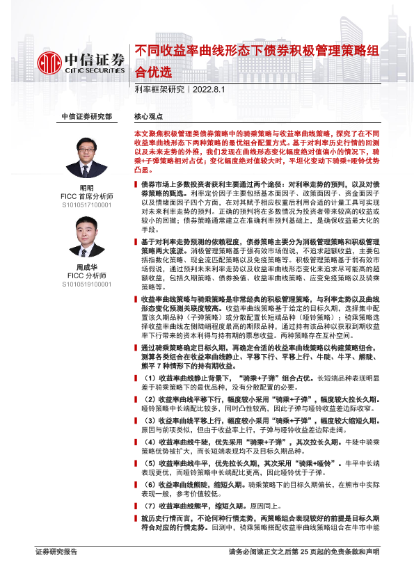 【中信证券】【20220801】不同收益率曲线形态下债券积极管理策略组合优选-26页