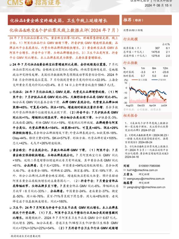 【海通证券】【20240815】2024年7月化妆品&珠宝&个护社零及线上数据点评-23页