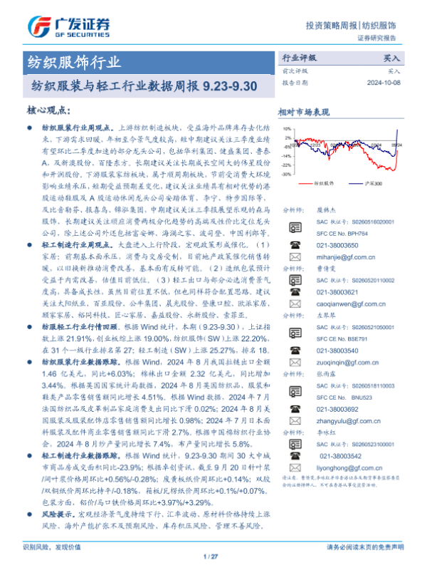 【广发证券】【20241008】纺织服装与轻工行业数据周报-27页