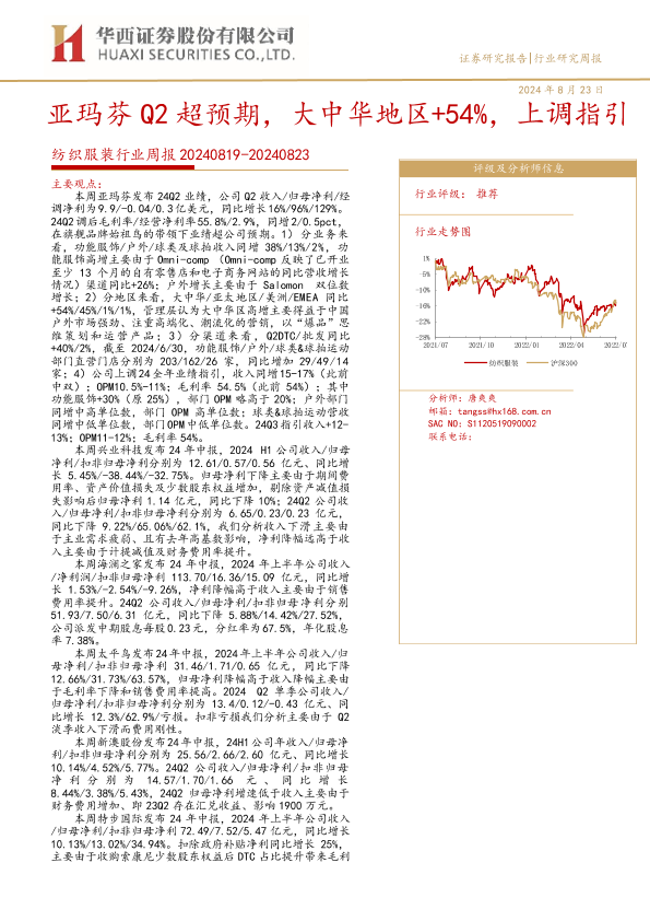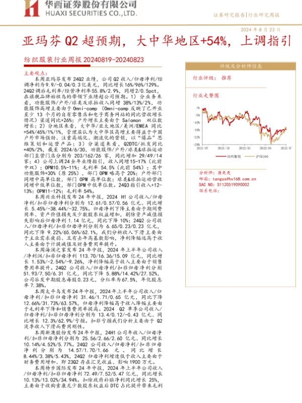 【华西证券】【20240823】20240823-华西证券-纺织服装行业周报:亚玛芬Q2超预期,大中华地区+54%,上调指引-35页