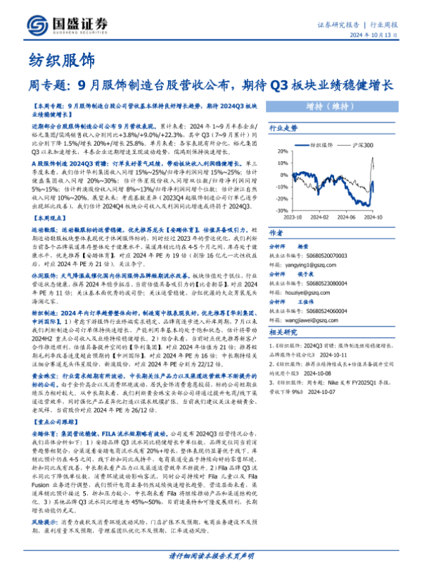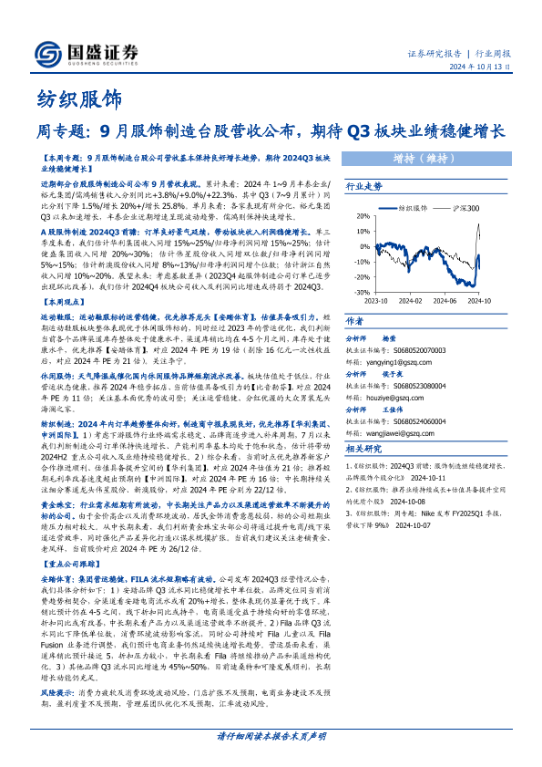 【国盛证券】【20241013】纺织服饰周专题:9月服饰制造台股营收公布,期待Q3板块业绩稳健增长-17页