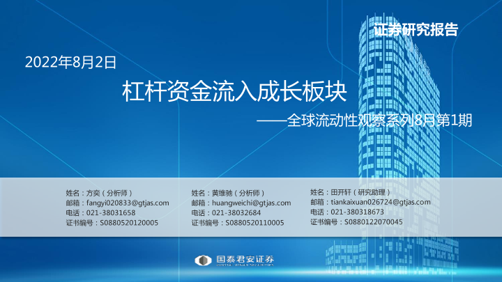 【国泰君安证券】【20220802】全球流动性观察系列8月第1期:杠杆资金流入成长板块-57页