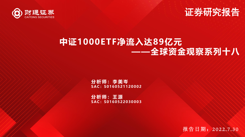 【财通证券】【20220730】全球资金观察系列十八:中证1000ETF净流入达89亿元-31页