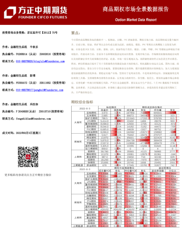 【方正中期期货】【20220803】商品期权市场全景数据报告-35页