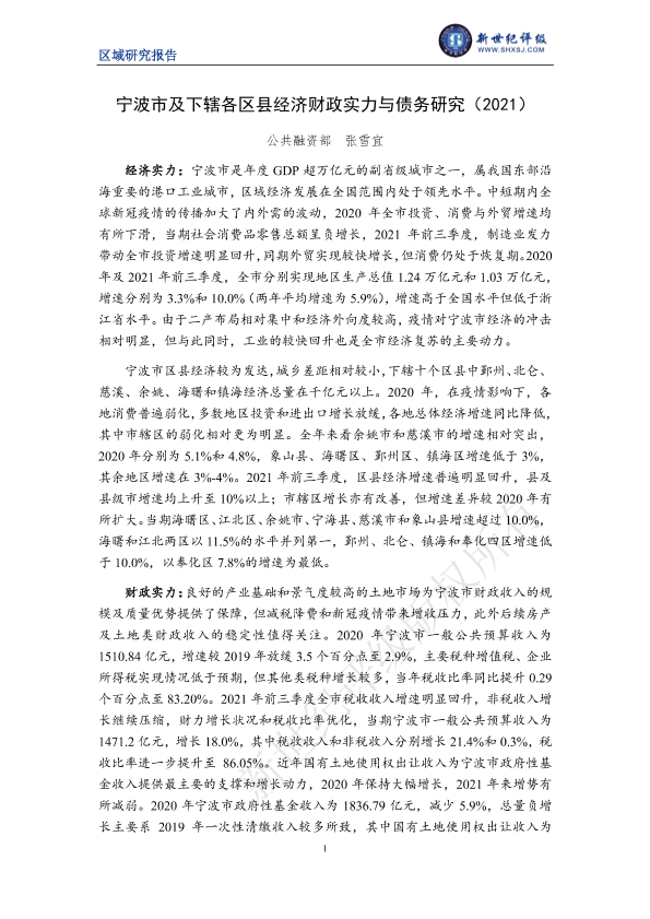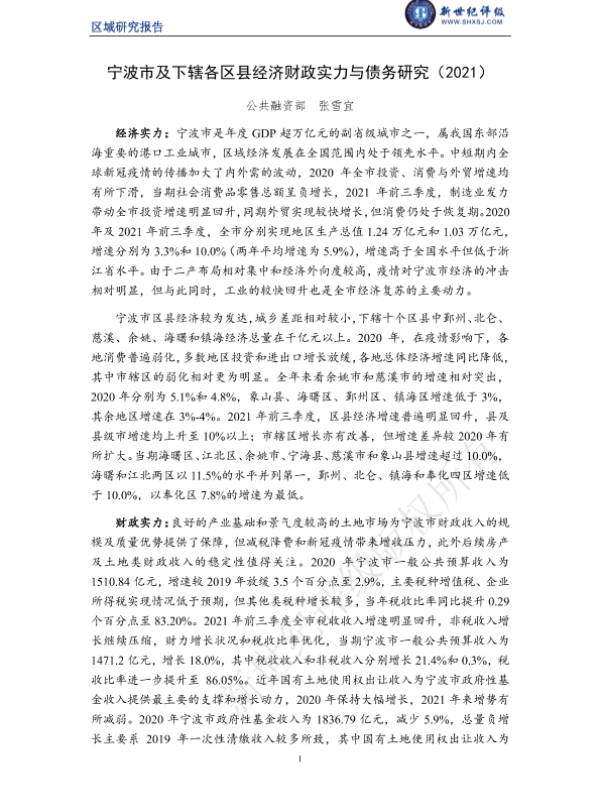 【新世纪评级】【20210101】宁波市及下辖各区县经济财政实力与债务研究(2021)-26页