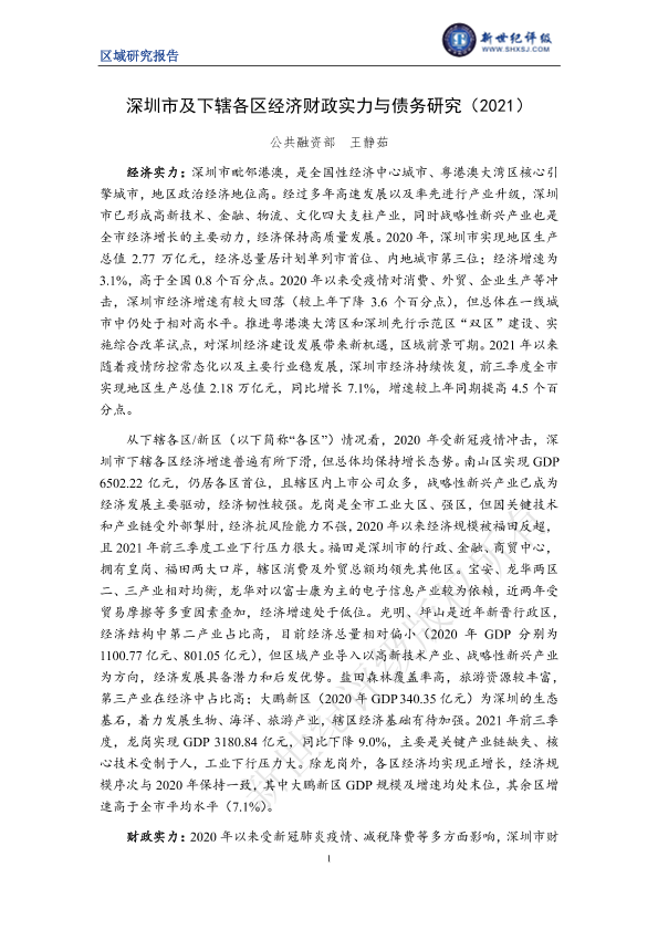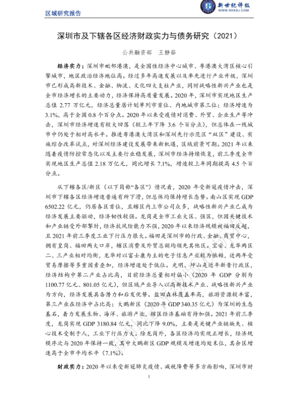 【新世纪评级】【20210101】深圳市及下辖各区经济财政实力与债务研究(2021)-21页