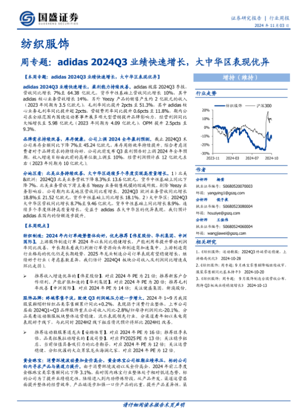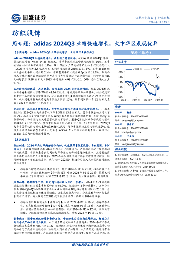 【国盛证券】【20241103】纺织服饰周专题:adidas 2024Q3业绩快速增长,大中华区表现优异-28页