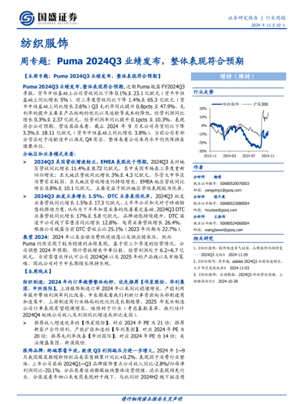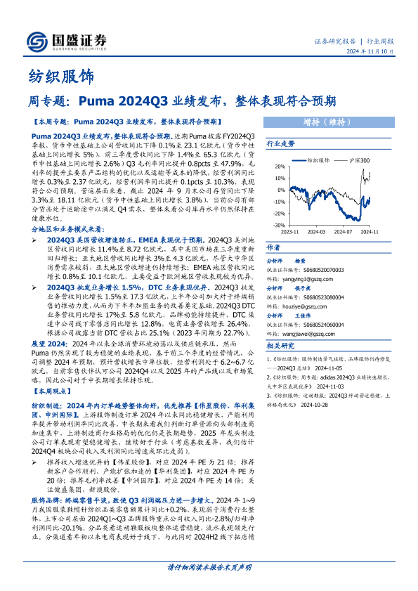 【国盛证券】【20241110】纺织服饰行业周专题:Puma2024Q3业绩发布,整体表现符合预期-14页