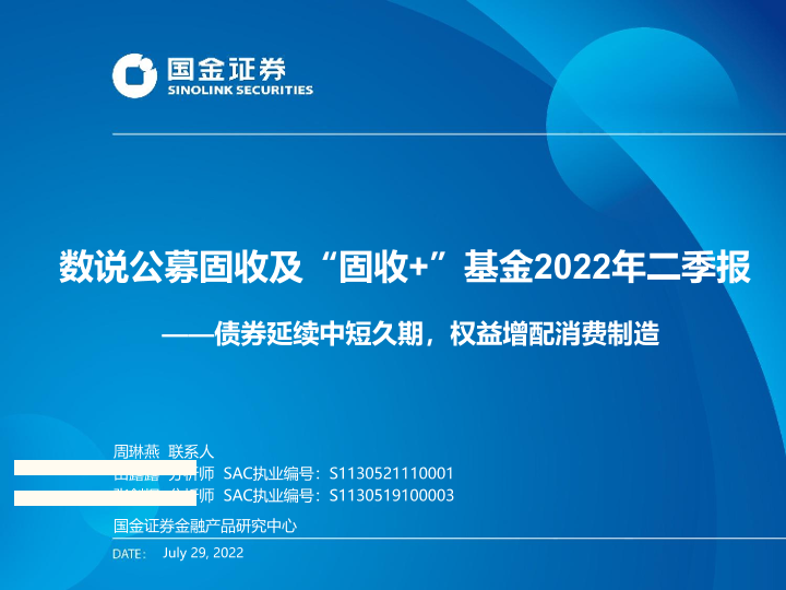 【国金证券】【20220729】数说公募固收及“固收+”基金2022年二季报:债券延续中短久期,权益增配消费制造-32页