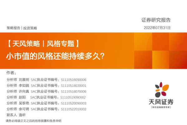 【天风证券】【20220731】天风策略风格专题:小市值的风格还能持续多久?-26页