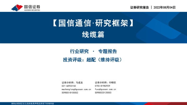 【国信证券】【20220804】通信行业研究框架:线缆篇-25页