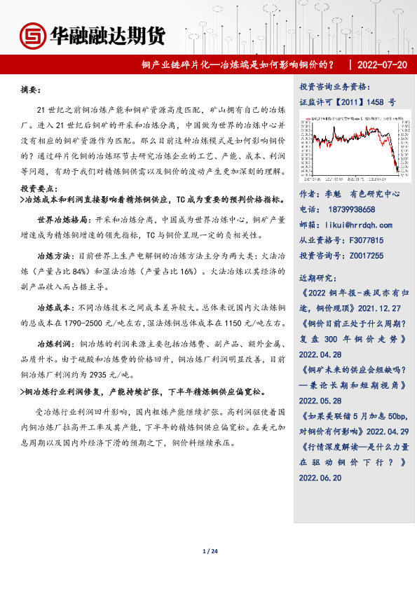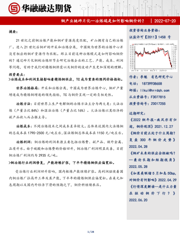 【华融融达期货】【20220720】铜产业链碎片化,冶炼端是如何影响铜价的?-24页