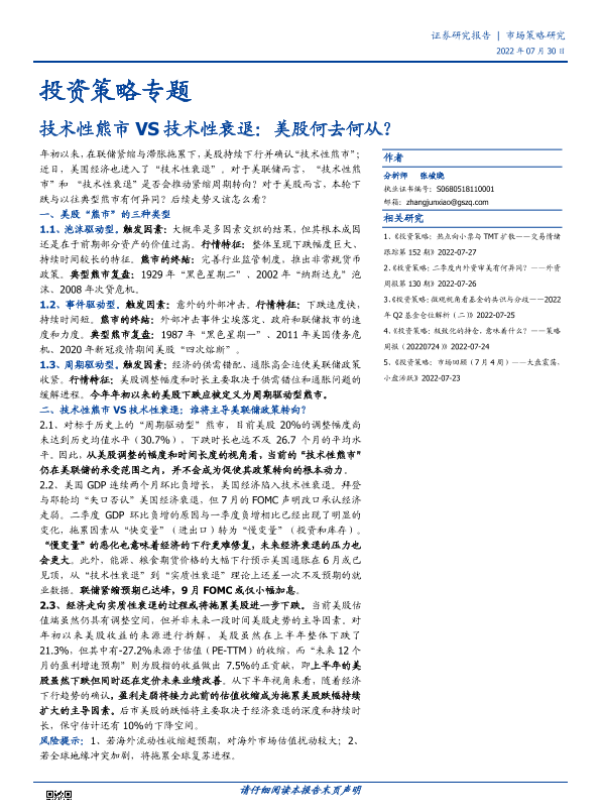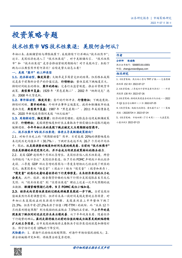 【国盛证券】【20220730】投资策略专题:技术性熊市VS技术性衰退,美股何去何从?-19页