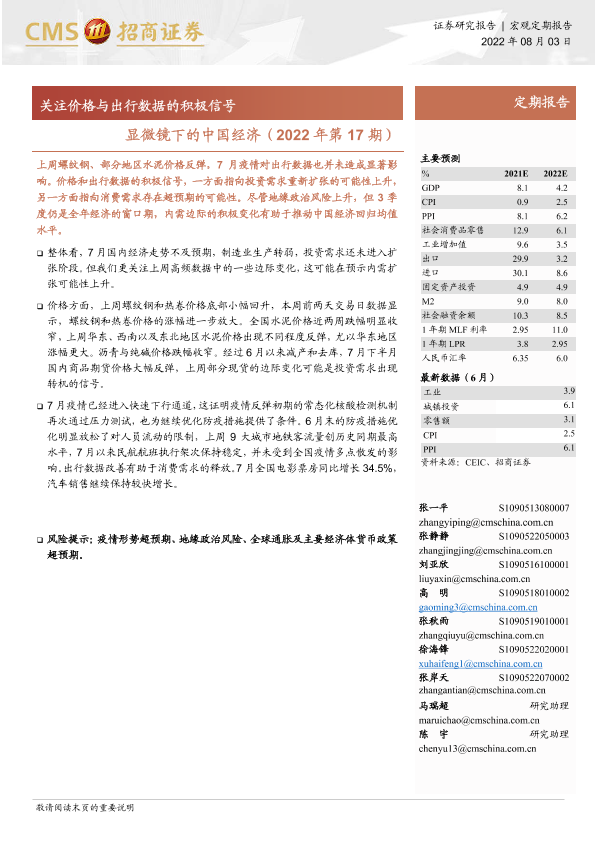 【海通证券】【20220803】显微镜下的中国经济(2022年第17期):关注价格与出行数据的积极信号-26页