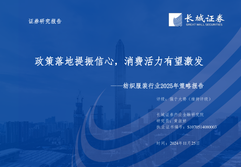 【长城证券】【20241125】纺织服装行业2025年策略报告:政策落地提振信心,消费活力有望激发-36页
