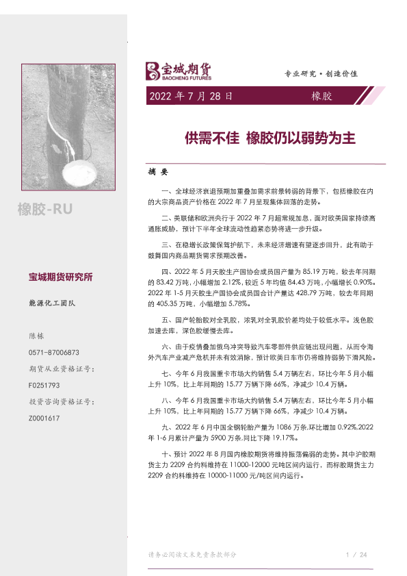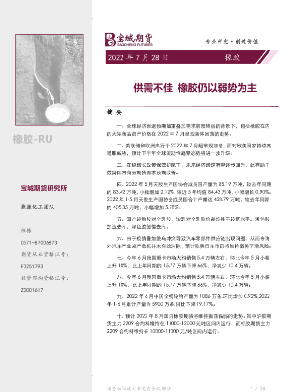 【宝城期货】【20220728】橡胶月报:供需不佳,橡胶仍以弱势为主-37页