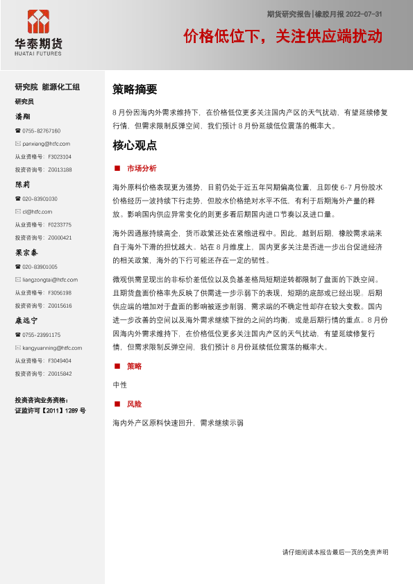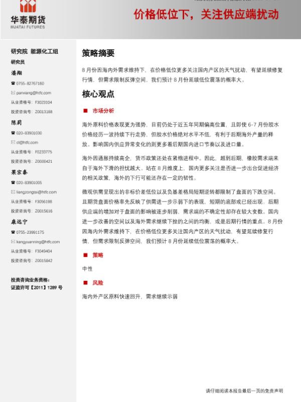 【华泰期货】【20220731】橡胶月报:价格低位下,关注供应端扰动-17页