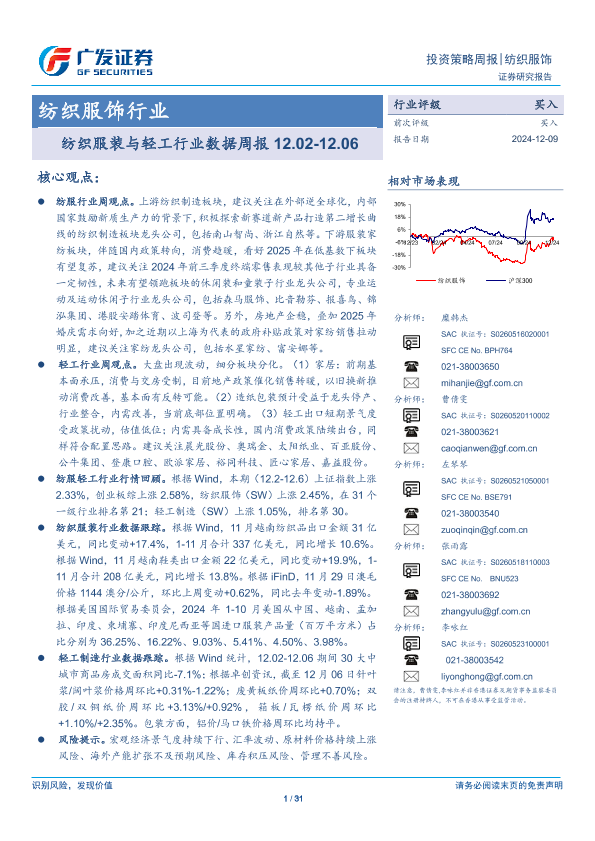【广发证券】【20241209】纺织服装与轻工行业数据周报-31页