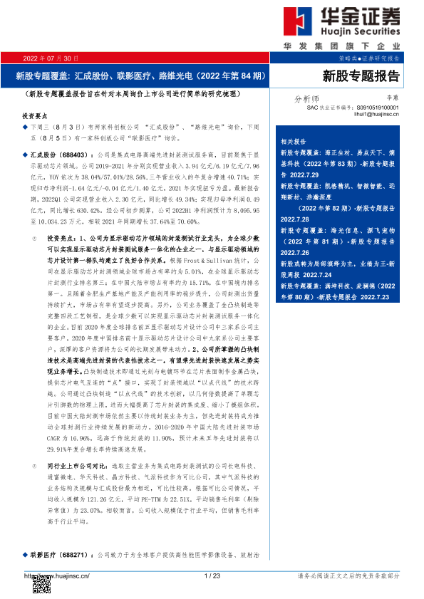 【华金证券】【20220730】新股专题覆盖:汇成股份、联影医疗、路维光电(2022年第84期)-23页