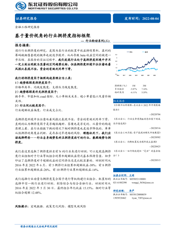 【东北证券】【20220804】行业轮动系列(三):基于量价视角的行业拥挤度指标框架-23页