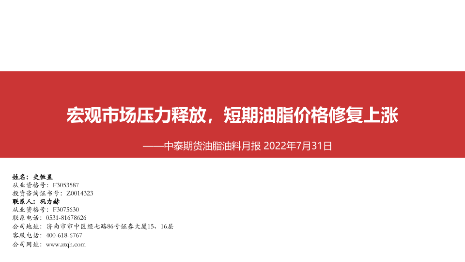 【中泰期货】【20220731】油脂油料月报:宏观市场压力释放,短期油脂价格修复上涨-60页