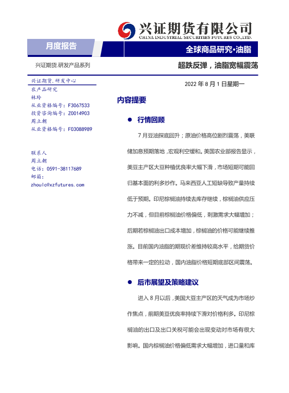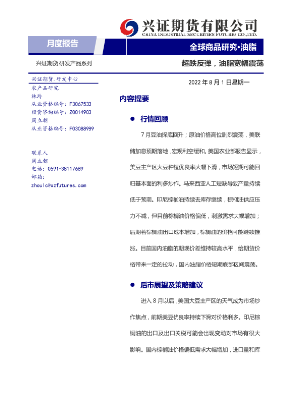 【兴证期货】【20220801】油脂月度报告:超跌反弹,油脂宽幅震荡-20页