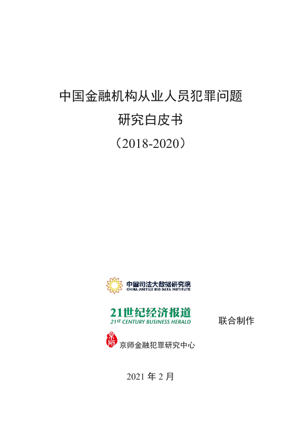 【中国司法大数据研究院】【202102】中国金融机构从业人员犯罪问题研究白皮书(2018-2020)-34页