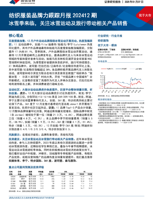 【国信证券】【20250107】纺织服装品牌力跟踪月报202412期:冰雪季来临,关注冰雪运动及旅行带动相关产品销售-13页