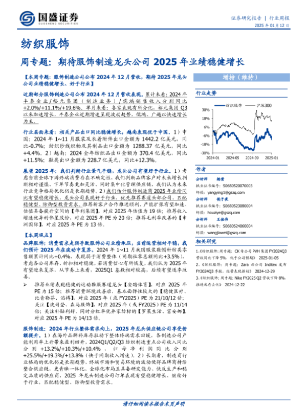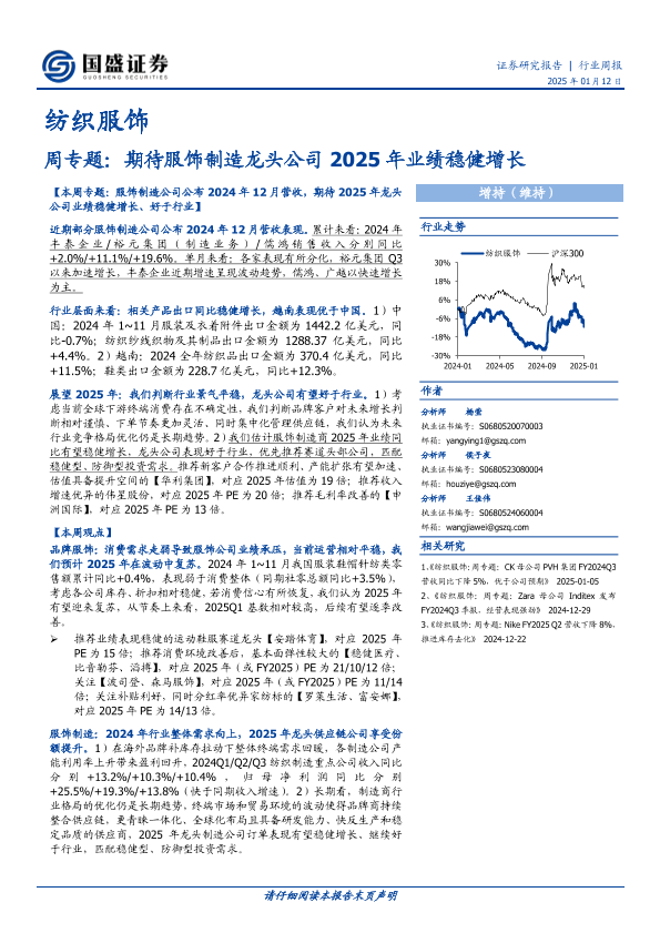 【国盛证券】【20250112】纺织服饰周专题:期待服饰制造龙头公司2025年业绩稳健增长-15页