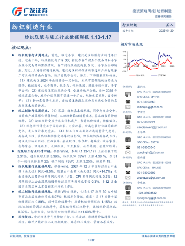 【广发证券】【20250120】纺织服装与轻工行业数据周报-37页