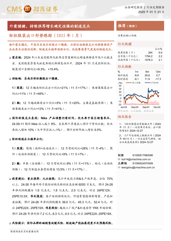 【海通证券】【20250121】纺织服装出口形势跟踪(2025年1月):外需稳健,持续推荐增长确定性强的制造龙头-10页