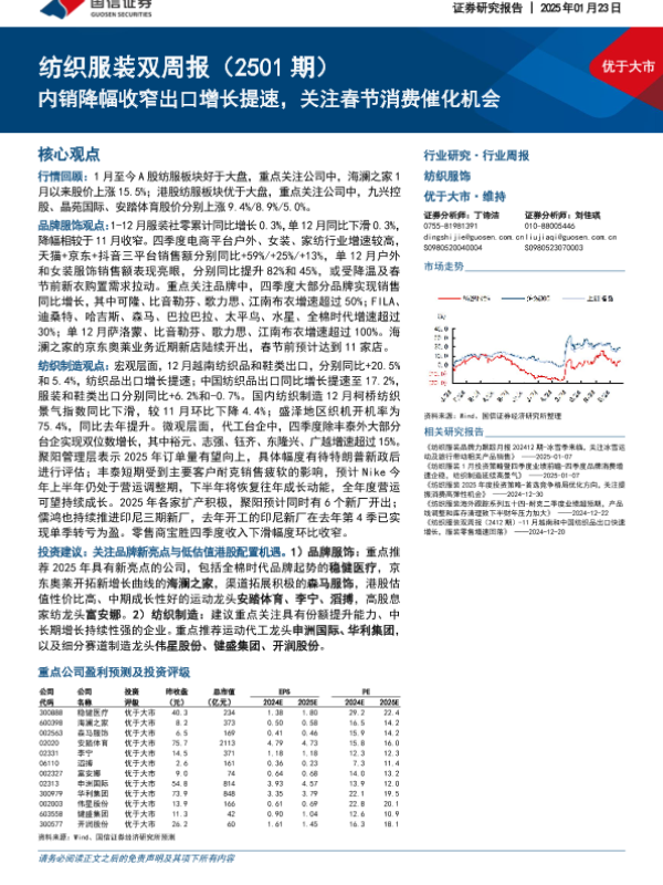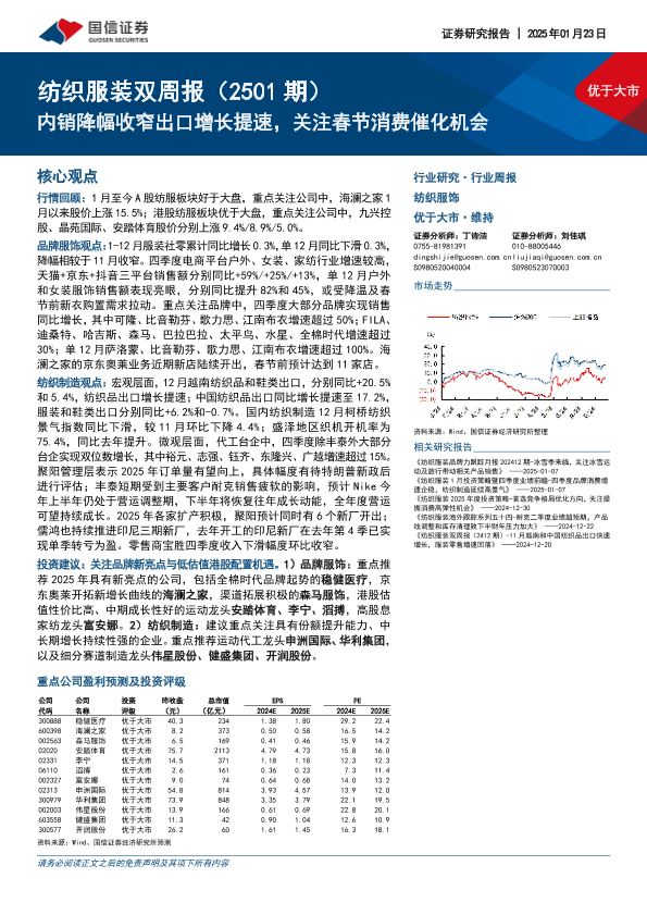【国信证券】【20250123】20250123-国信证券-纺织服装双周报(2501期):内销降幅收窄出口增长提速,关注春节消费催化机会-22页
