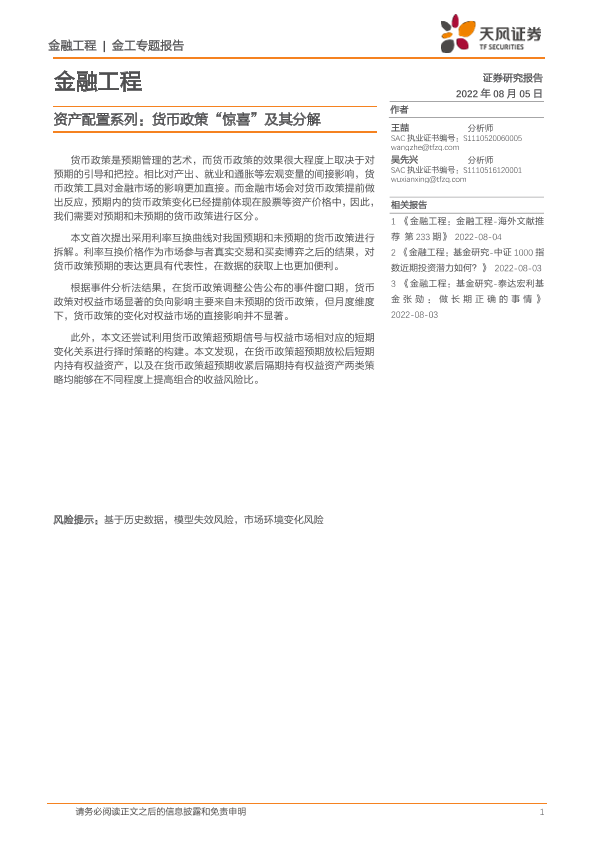 【天风证券】【20220805】资产配置系列:货币政策“惊喜”及其分解-17页
