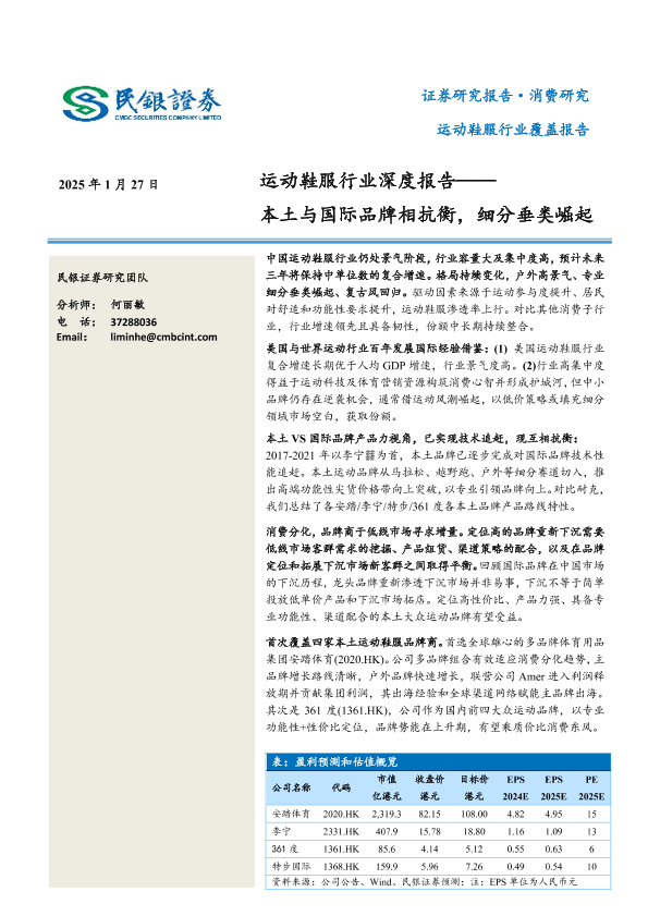 【民银证券】【20250127】运动鞋服行业深度报告:本土与国际品牌相抗衡,细分垂类崛起-36页