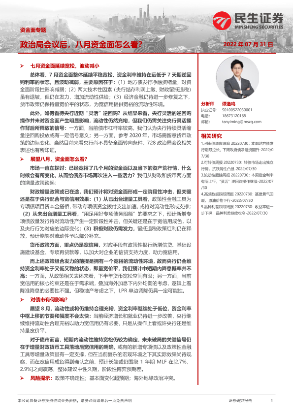 【民生证券】【20220731】政治局会议后,八月资金面怎么看?-18页