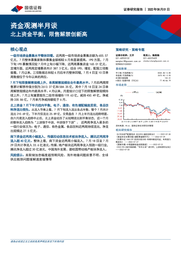 【国信证券】【20220801】资金观测半月谈:北上资金平衡,限售解禁创新高-19页