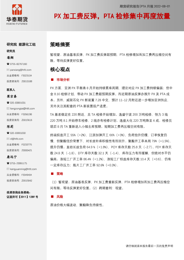 【华泰期货】【20220801】PTA月报:PX加工费反弹,PTA检修集中再度放量-17页