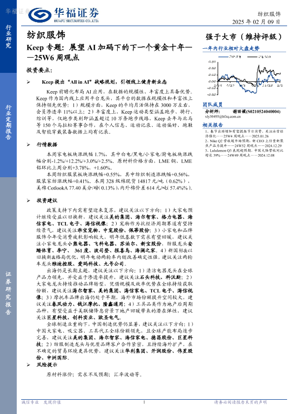 【华福证券】【20250209】纺织服饰25W6周观点:Keep专题:展望AI加码下的下一个黄金十年-18页