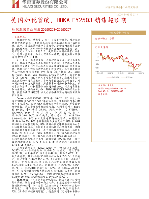 【华西证券】【20250207】20250207-华西证券-纺织服装行业周报:美国加税暂缓,HOKA FY25Q3销售超预期-38页