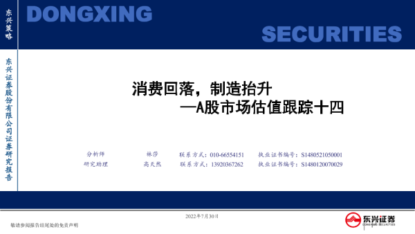 【东兴证券】【20220730】A股市场估值跟踪十四:消费回落,制造抬升-23页
