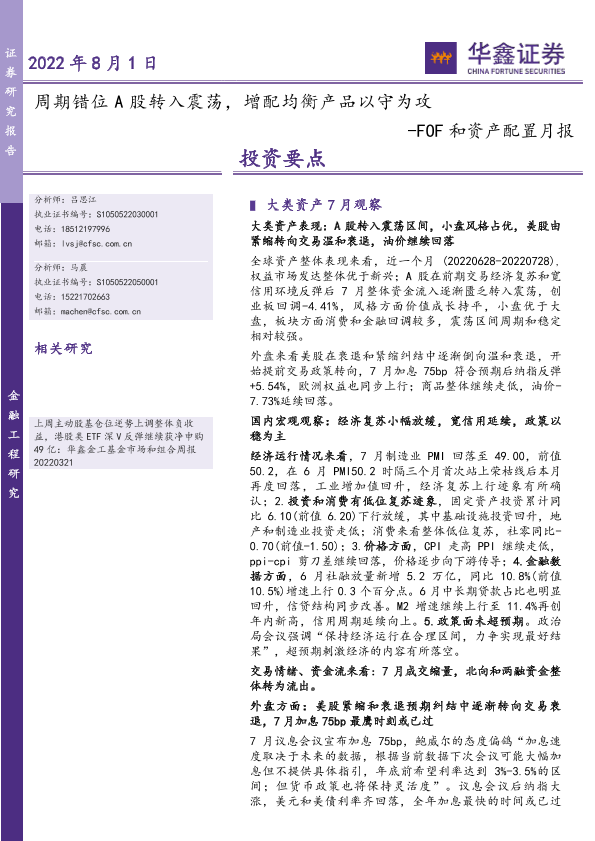 【华鑫证券】【20220801】FOF和资产配置月报:周期错位A股转入震荡,增配均衡产品以守为攻-33页