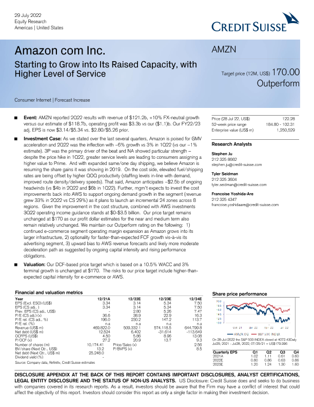 【Credit Suisse】【20220729】Amazon com Inc-Starting to Grow into Its Raised Capacity-23页