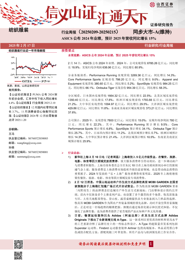 【山西证券】【20250217】纺织服装行业周报:ASICS公布2024年业绩,预计2025年营收同比增长15%-17页