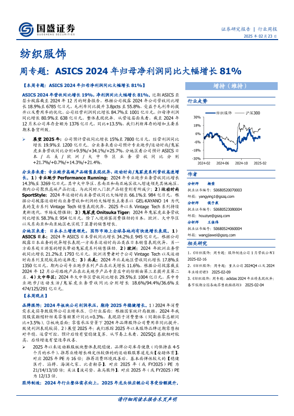 【国盛证券】【20250223】纺织服饰行业周专题:ASICS 2024年归母净利润同比大幅增长81%-16页