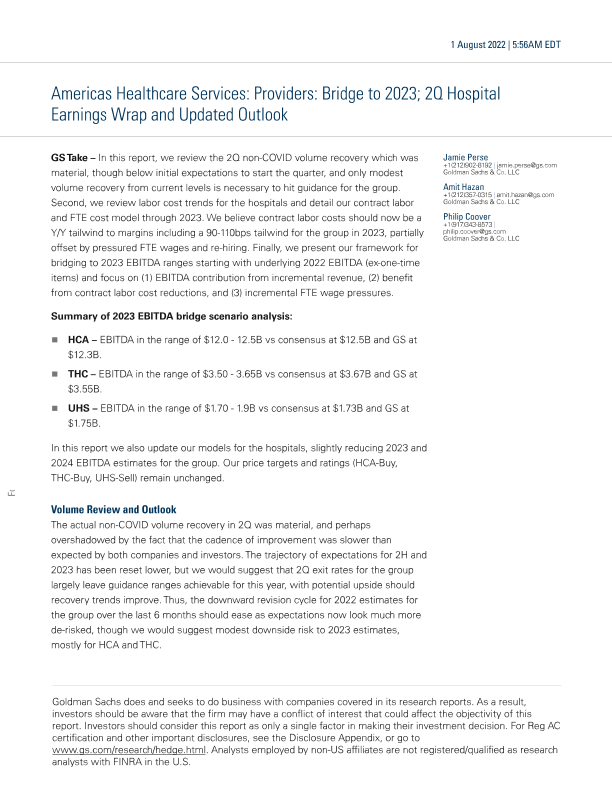 【Goldman Sachs】【20220801】es_ Providers_ Bridge to 2023; 2Q Hospital Earnings Wrap and Updated Outlook-19页