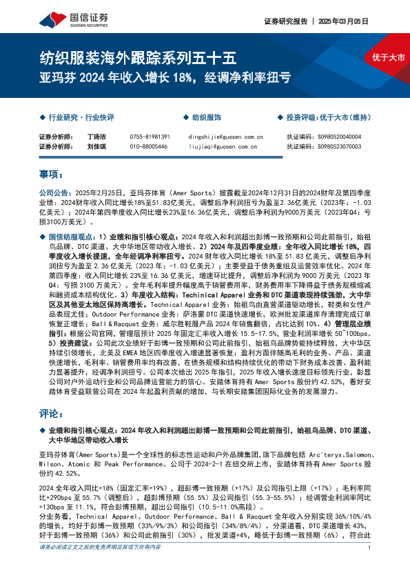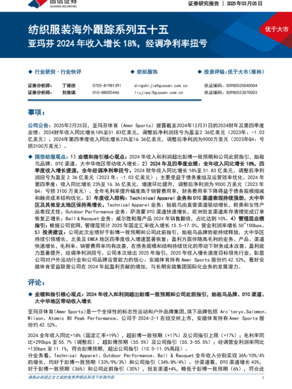 【国信证券】【20250305】纺织服装海外跟踪系列五十五:亚玛芬2024年收入增长18%,经调净利率扭亏-10页